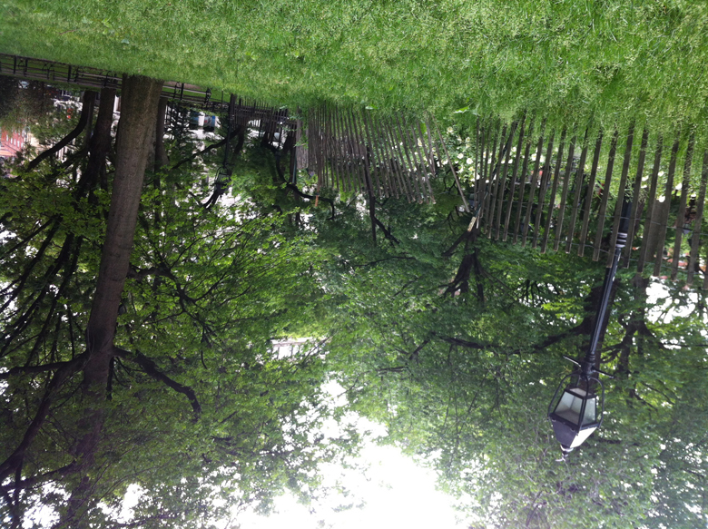 Once in a while, when you’re sitting on a bench in Washington Square Park, as you were this morning, waiting for your Ba Gua students to arrive, you’ll stretch back holding your iPhone over your head and shoot blind behind you, upside down. Nor, necessarily, do you look at what you got until later.