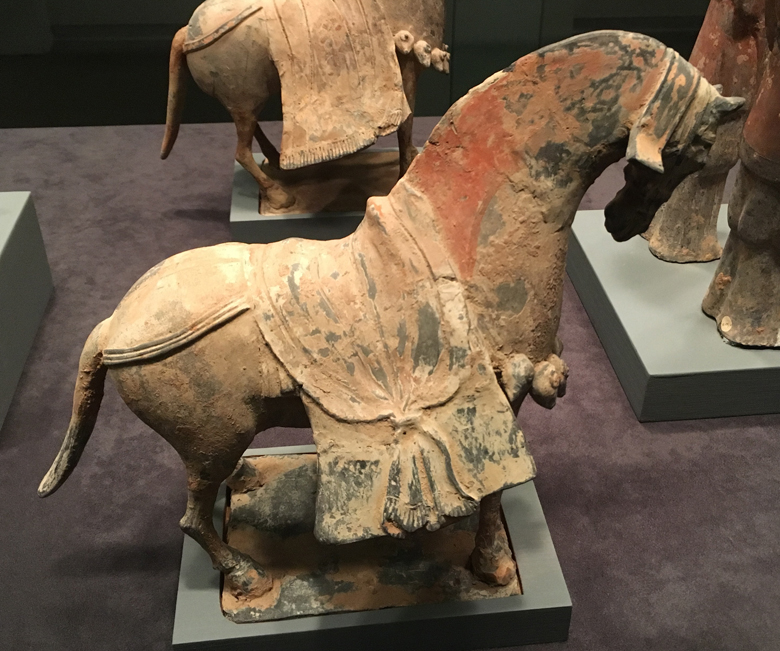 Reads Lieu Renben’s inscription on a “Bamboo and Rock,” a painting by the Deng Yu, translated by Wen Fong. The title card states that Yu is remembered primarily as a prominent Daoist priest, but that he was also a “gifted painter [whose] dramatic image of young bamboo rising over covered rocks [was] created during the turbulent waning years of the Yuan [and could be interpreted] as a poignant vision of survival against the odds.” Gifted. Dramatic. Poignant. The odds.