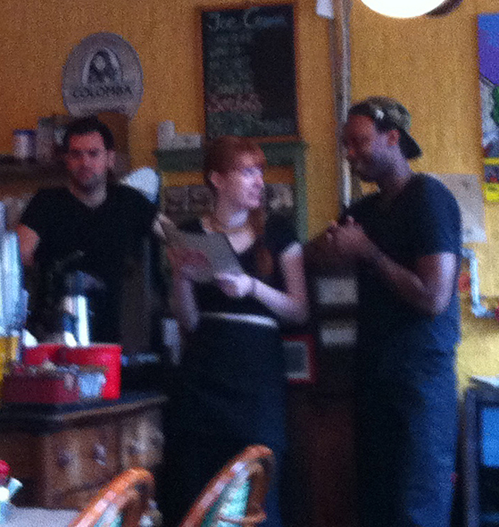 The rain has just abated. Traffic thick on 34th Street. You gaze absently through the bus window and across the street. A young woman in standard summer office clothes walks purposefully west amidst the lunchtime crowd. Perched on her right hand, a large flapping crow, a raven. Double take: her still-unwrapped folding umbrella.