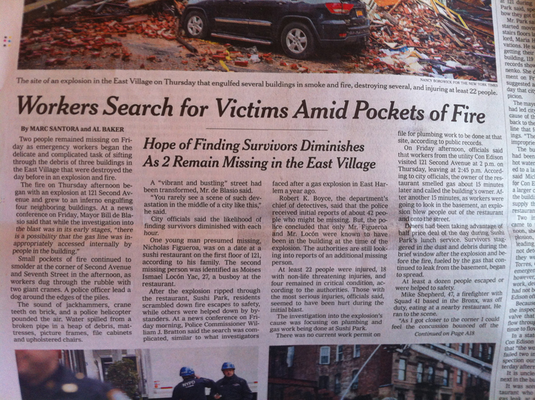 ¶ 7: “City officials said the likelihood of finding survivors diminished with each hour.” Or as they say in BK: No shit, Sherlock.